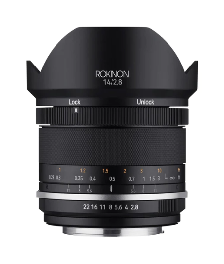 Based upon ROKINON’s original and highly popular Full Frame MF 14mm F2.8, the SERIES II models offers a sleek, comfortable ergonomic design with a bunch of new and useful features. SERIES II ROKINON lenses include weather sealing, an aperture de-click switch for smooth and silent operation during video, a rubberized micro pattern focusing grip, and a nine blade circular aperture for greater bokeh. In addition, the focusing control action has been modified with a smoother, perfectly damped long throw for precise follow focus when shooting video. The SERIES II 14mm also adds a unique focus lock feature. This enables precise infinity focus to remain locked in during long exposures, a highly useful feature that astrophotographers will love. The SERIES II 14mm F2.8 delivers an ultra-wide 115.7° angle of view for full frame cameras with wide angle views of approximately 94°/90°/76° respectively for APS-C/ Canon APS-C/ MFT sensor models. Its sophisticated 14-element in ten group design utilizes seven specialized elements that include Hybrid Aspherical, HRI, Aspherical, and ED types plus UMC antireflective coatings for clear and vibrant images.